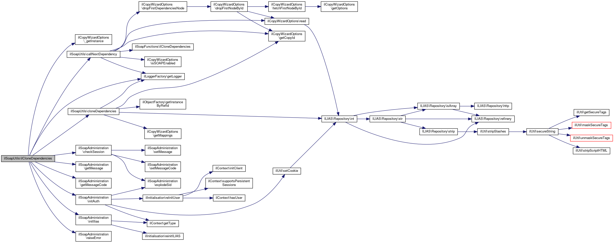 Here is the call graph for this function:| ilSoapUtils::ilCloneDependencies | ( | string | $sid, |