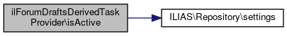 Here is the call graph for this function:| ilForumDraftsDerivedTaskProvider::isActive | ( | ) |