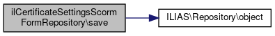 Here is the call graph for this function:| ilCertificateSettingsScormFormRepository::save | ( | array | $formFields | ) |