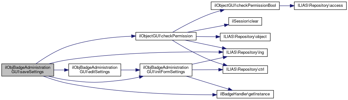 References ilObjectGUI\$ctrl, $handler, ilObjectGUI\checkPermission(), editSettings(), ilBadgeHandler\getInstance(), initFormSettings(), and ILIAS\Repository\lng().