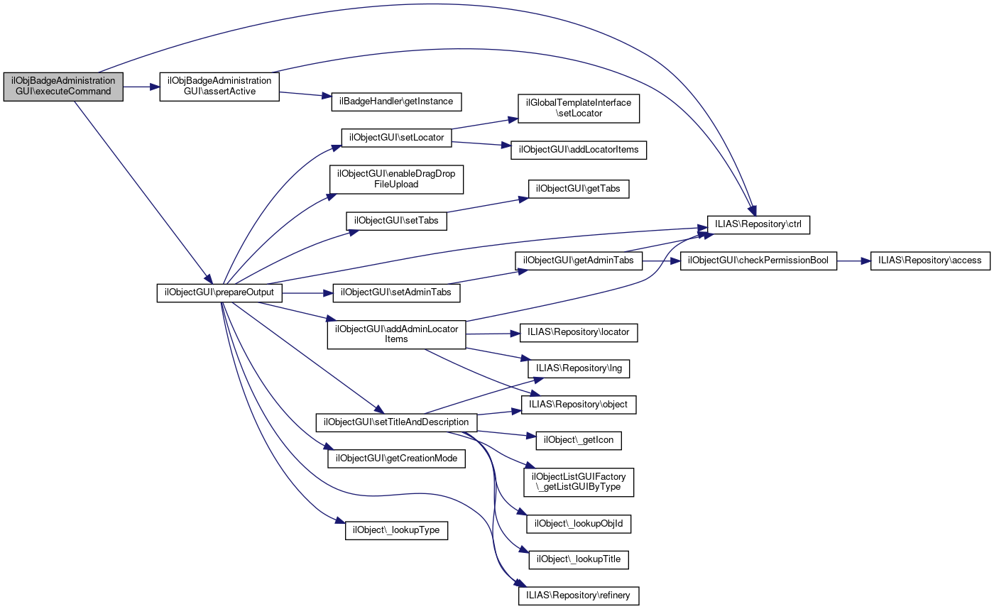 Here is the caller graph for this function:| ilObjBadgeAdministrationGUI::executeCommand | ( | ) |