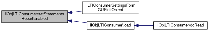 Here is the caller graph for this function:| ilObjLTIConsumer::setStatementsReportEnabled | ( | bool | $statementsReportEnabled | ) |