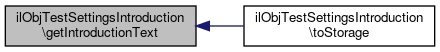 Here is the caller graph for this function:| ilObjTestSettingsIntroduction::getIntroductionText | ( | ) |