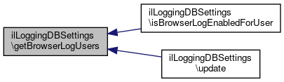 Here is the caller graph for this function:| ilLoggingDBSettings::getBrowserLogUsers | ( | ) |