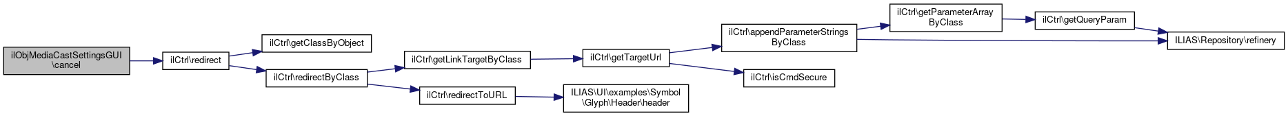 Here is the call graph for this function:| ilObjMediaCastSettingsGUI::cancel | ( | ) |