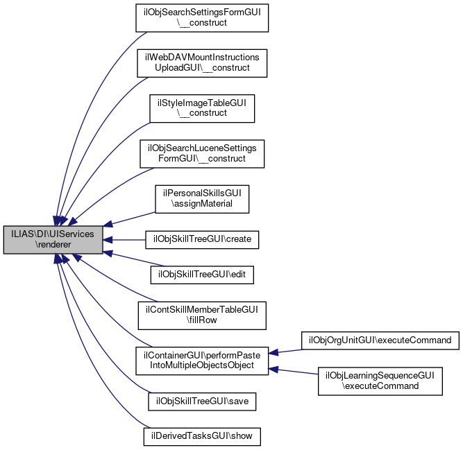 Here is the caller graph for this function:| ILIAS\DI\UIServices::renderer | ( | ) |