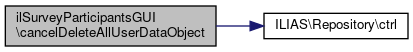 Here is the call graph for this function:| ilSurveyParticipantsGUI::cancelDeleteAllUserDataObject | ( | ) |
