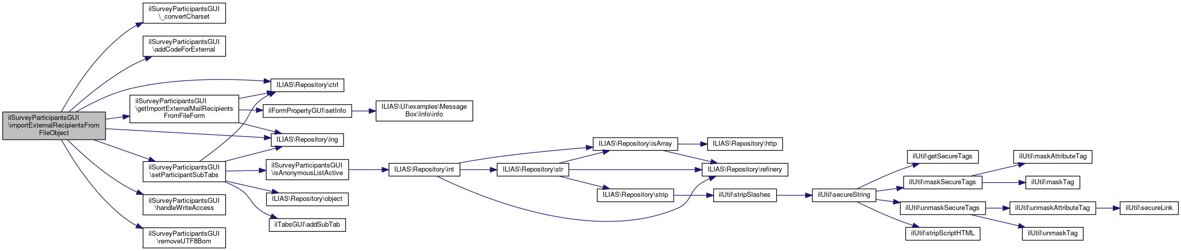 Here is the call graph for this function:| ilSurveyParticipantsGUI::importExternalRecipientsFromFileObject | ( | ) |
