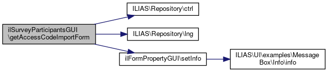 Here is the call graph for this function:| ilSurveyParticipantsGUI::setCodeLanguageObject | ( | ) |