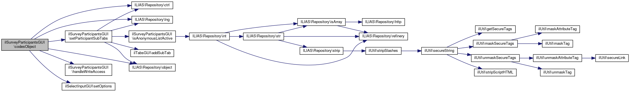 Here is the call graph for this function:| ilSurveyParticipantsGUI::codesObject | ( | ) |