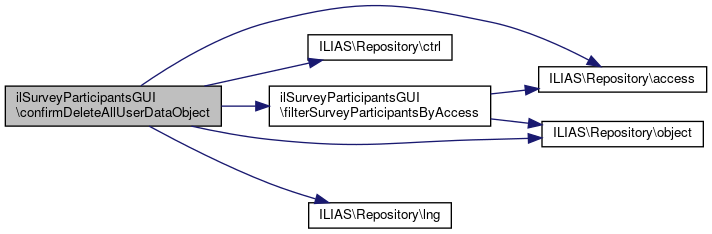 Here is the call graph for this function:| ilSurveyParticipantsGUI::confirmDeleteAllUserDataObject | ( | ) |