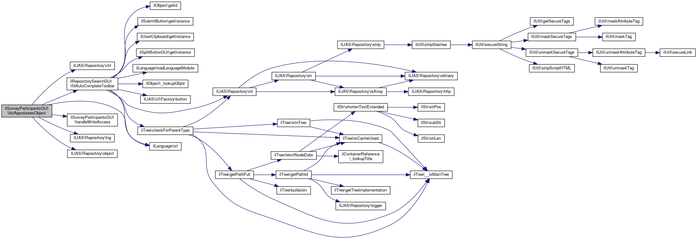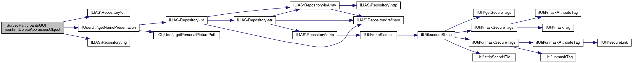 Here is the call graph for this function:| ilSurveyParticipantsGUI::confirmDeleteAppraiseesObject | ( | ) |