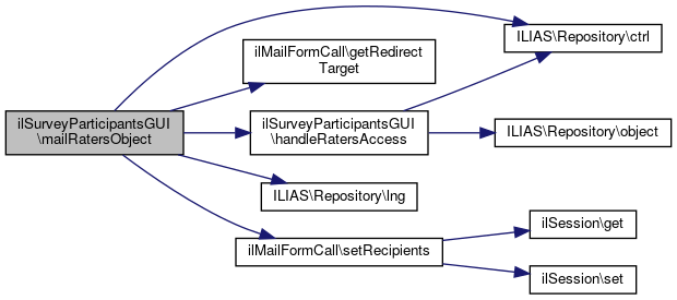 Here is the call graph for this function:| ilSurveyParticipantsGUI::mailRatersObject | ( | ) |