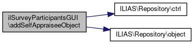 Here is the call graph for this function:| ilSurveyParticipantsGUI::addSelfAppraiseeObject | ( | ) |