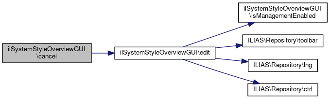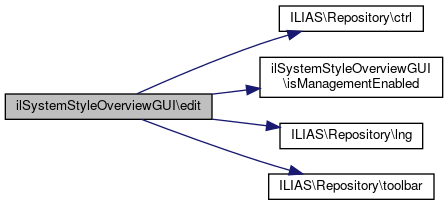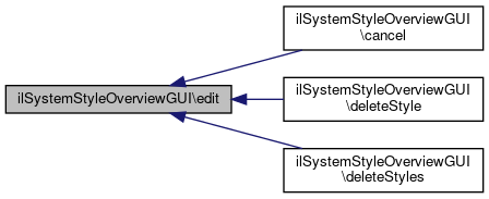Here is the call graph for this function:| ilSystemStyleOverviewGUI::edit | ( | ) |
