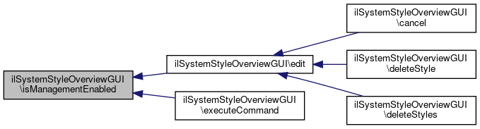 Here is the caller graph for this function:| ilSystemStyleOverviewGUI::isManagementEnabled | ( | ) |