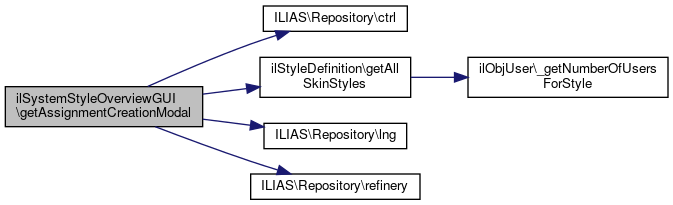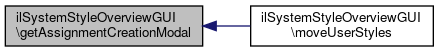 Here is the call graph for this function:| ilSystemStyleOverviewGUI::getAssignmentCreationModal | ( | string | $style_name = "" | ) |