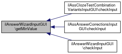 Here is the caller graph for this function:| ilAnswerWizardInputGUI::getMinValue | ( | ) |