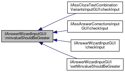 Here is the caller graph for this function:| ilAnswerWizardInputGUI::minvalueShouldBeGreater | ( | ) |