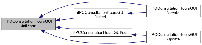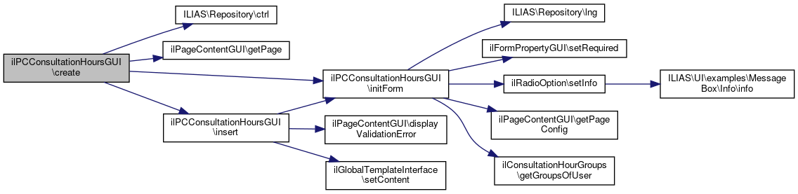 Here is the call graph for this function:| ilPCConsultationHoursGUI::create | ( | ) |