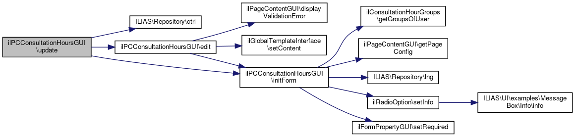 Here is the caller graph for this function:| ilPCConsultationHoursGUI::update | ( | ) |