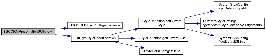 Here is the call graph for this function:| ilSCORMPresentationGUI::view | ( | ) |