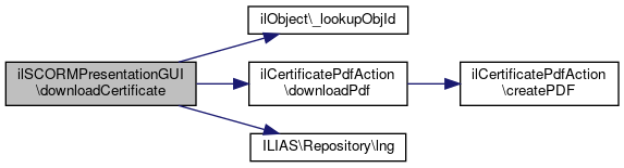 Here is the call graph for this function:| ilSCORMPresentationGUI::downloadCertificate | ( | ) |