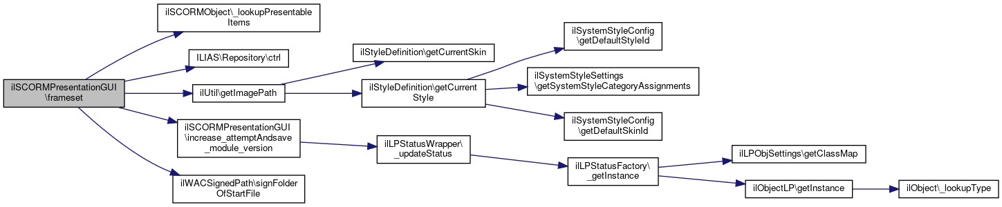 Here is the call graph for this function:| ilSCORMPresentationGUI::frameset | ( | ) |