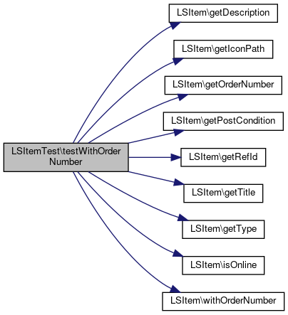 Here is the call graph for this function:| LSItemTest::testWithOrderNumber | ( | LSItem | $object | ) |
