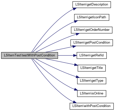 Here is the call graph for this function:| LSItemTest::testWithPostCondition | ( | LSItem | $object | ) |