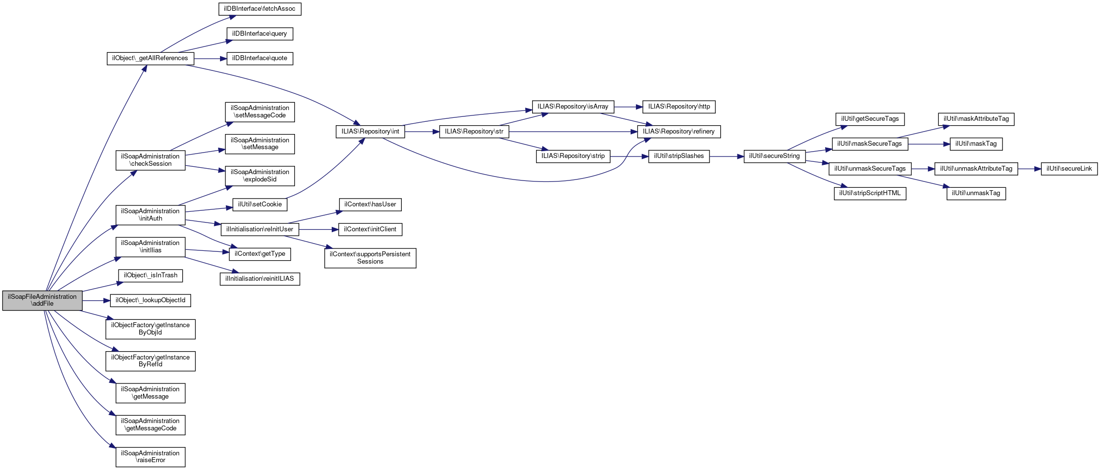 References $DIC, ilFileException\$ID_MISMATCH, $ref_id, $requested_ref_id, ilObject\_getAllReferences(), ilObject\_isInTrash(), ilObject\_lookupObjectId(), ilSoapAdministration\checkSession(), ilObjectFactory\getInstanceByObjId(), ilObjectFactory\getInstanceByRefId(), ilSoapAdministration\getMessage(), ilSoapAdministration\getMessageCode(), ilSoapAdministration\initAuth(), ilSoapAdministration\initIlias(), and ilSoapAdministration\raiseError().