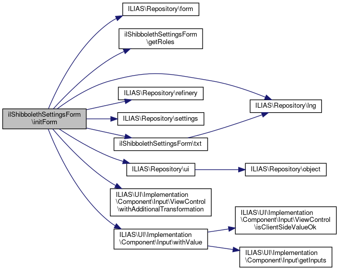 Here is the call graph for this function:| ilShibbolethSettingsForm::initForm | ( | ) |
