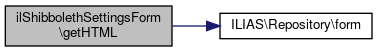 Here is the caller graph for this function:| ilShibbolethSettingsForm::getHTML | ( | ) |