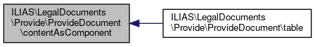 Here is the call graph for this function:| ILIAS\LegalDocuments\Provide\ProvideDocument::contentAsComponent | ( | DocumentContent | $content | ) |