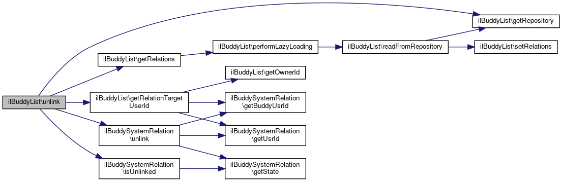 References Vendor\Package\$e, getRelations(), getRelationTargetUserId(), getRepository(), ilBuddySystemRelation\isUnlinked(), and ilBuddySystemRelation\unlink().
