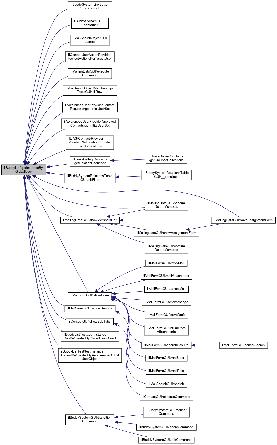Referenced by ilBuddySystemLinkButton\__construct(), ilBuddySystemGUI\__construct(), ilMailSearchObjectGUI\cancel(), ilContactUserActionProvider\collectActionsForTargetUser(), ilMailingListsGUI\executeCommand(), ilMailSearchObjectMembershipsTableGUI\fillRow(), ilAwarenessUserProviderContactRequests\getInitialUserSet(), ilAwarenessUserProviderApprovedContacts\getInitialUserSet(), ILIAS\Contact\Provider\ContactNotificationProvider\getNotifications(), ilUsersGalleryContacts\getRelationSequence(), ilBuddySystemRelationsTableGUI\initFilter(), ilMailingListsGUI\performDeleteMembers(), ilMailingListsGUI\saveAssignmentForm(), ilMailFormGUI\showForm(), ilMailingListsGUI\showMembersList(), ilMailSearchGUI\showResults(), ilContactGUI\showSubTabs(), ilBuddyListTest\testInstanceCanBeCreatedByGlobalUserObject(), ilBuddyListTest\testInstanceCannotBeCreatedByAnonymousGlobalUserObject(), and ilBuddySystemGUI\transitionCommand().