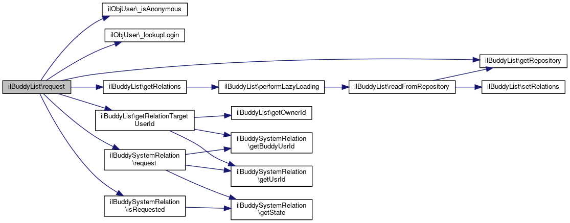 Here is the caller graph for this function:| ilBuddyList::request | ( | ilBuddySystemRelation | $relation | ) |