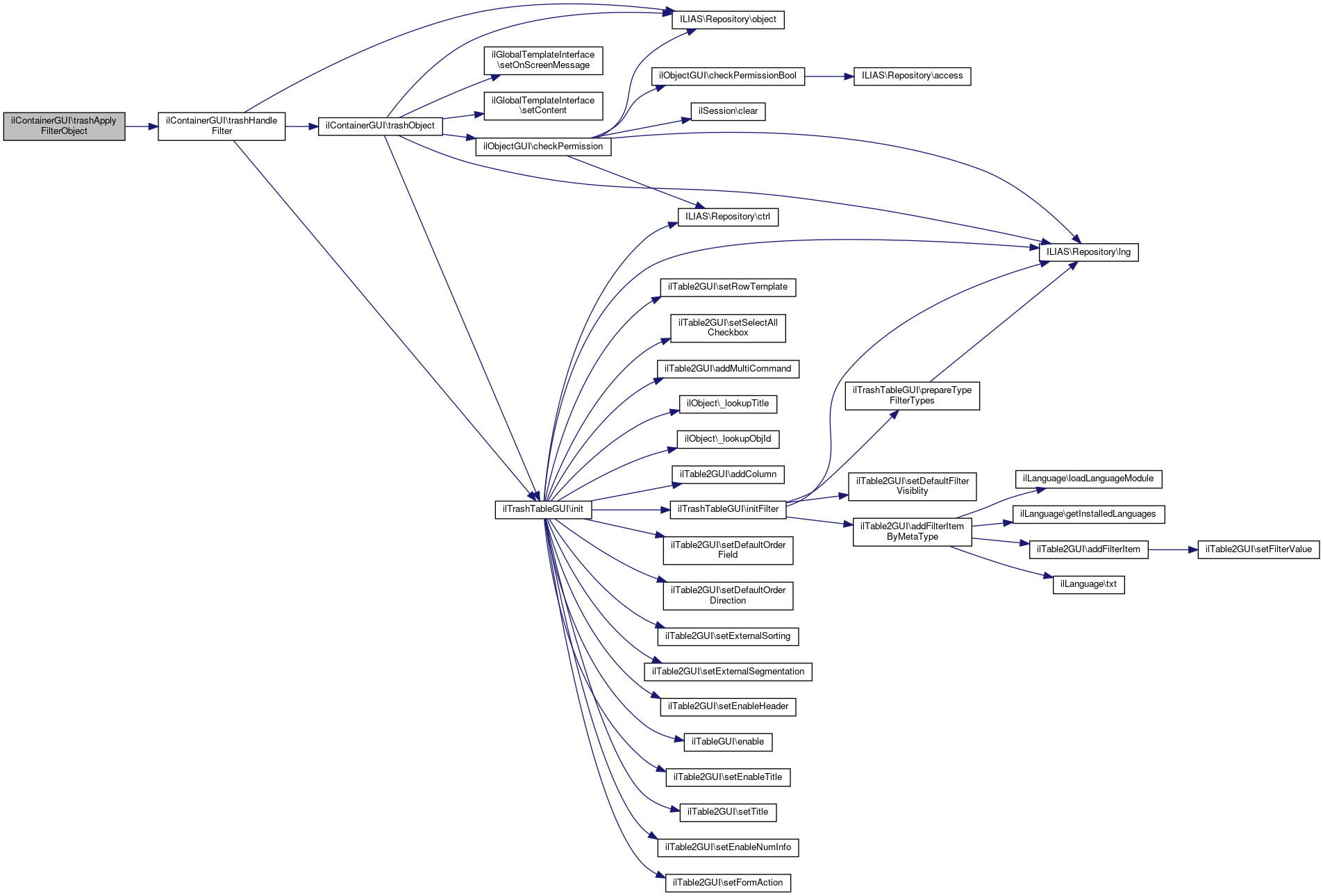 Here is the caller graph for this function:| ilContainerGUI::trashApplyFilterObject | ( | ) |