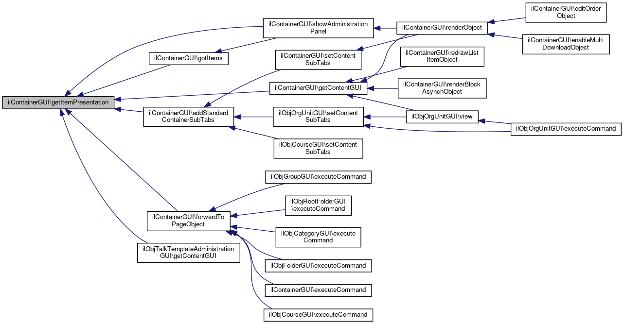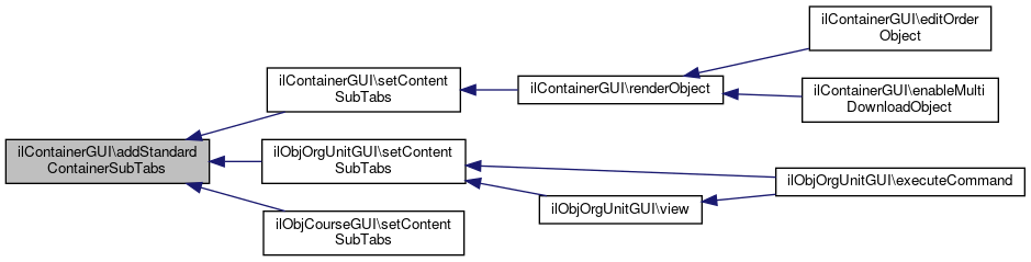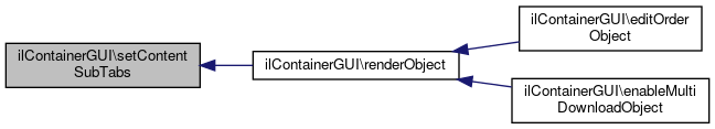 Here is the call graph for this function:| ilContainerGUI::setContentSubTabs | ( | ) |