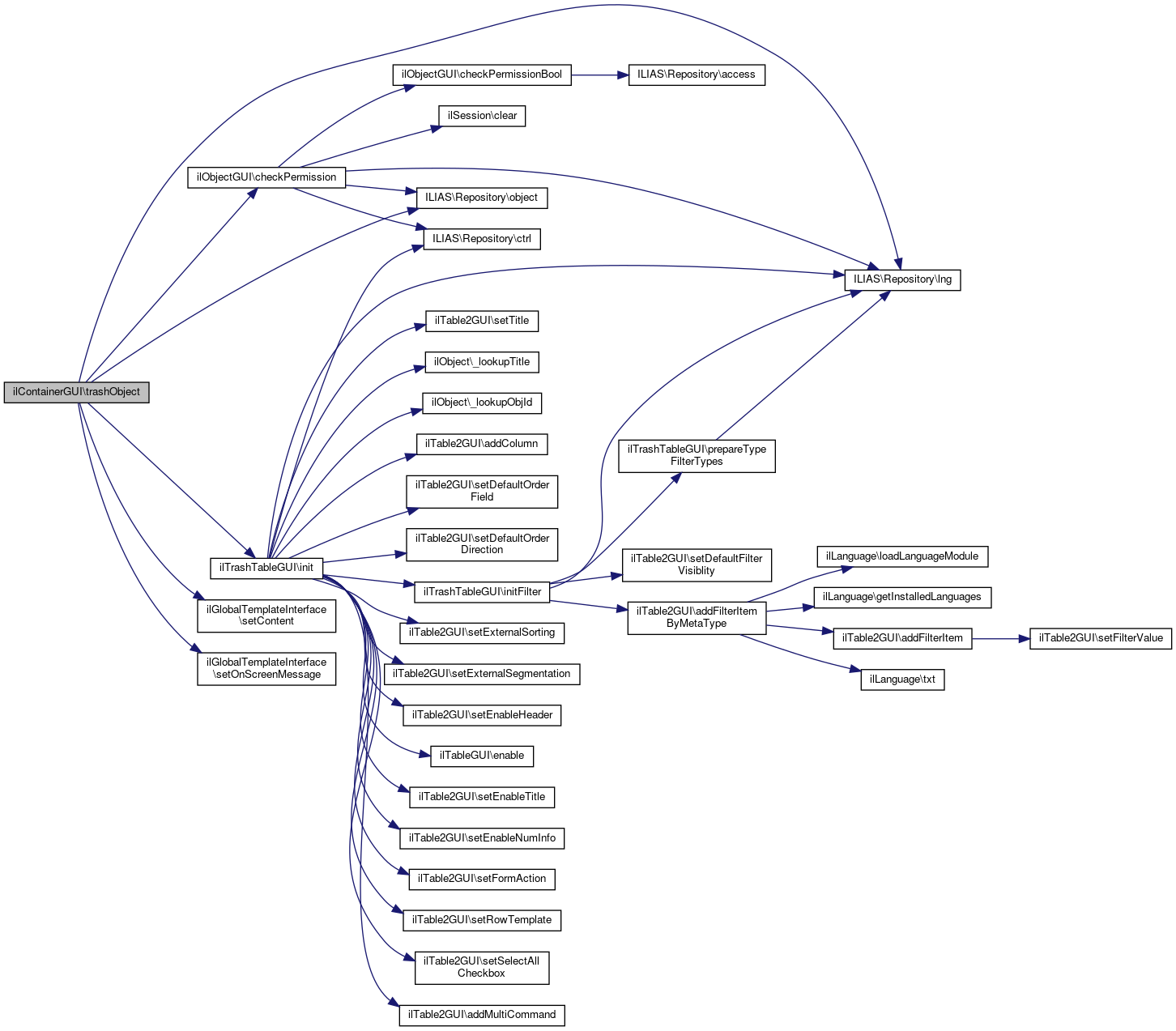 Here is the caller graph for this function:| ilContainerGUI::trashObject | ( | ) |