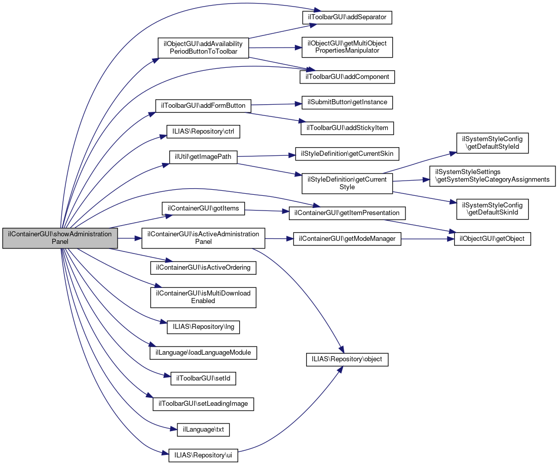Here is the caller graph for this function:| ilContainerGUI::showAdministrationPanel | ( | ) |