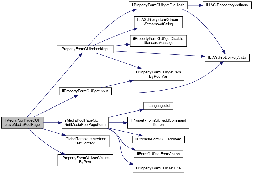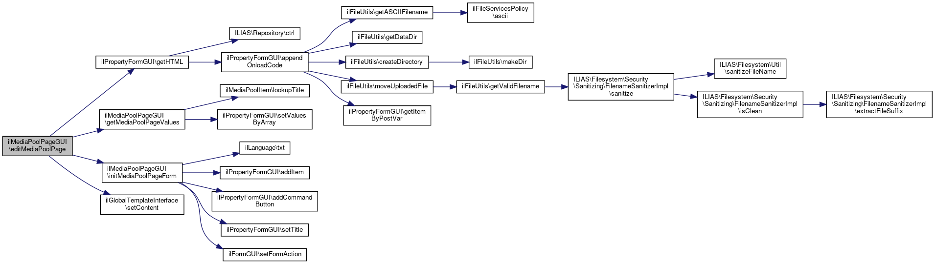 Here is the call graph for this function:| ilMediaPoolPageGUI::editMediaPoolPage | ( | ) |