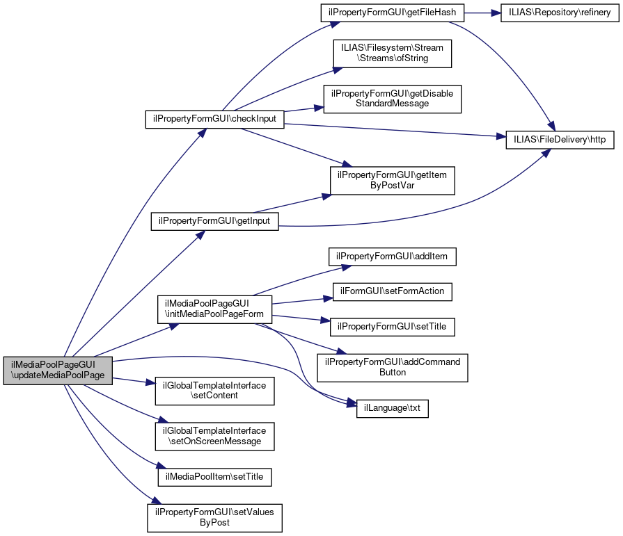 Here is the call graph for this function:| ilMediaPoolPageGUI::updateMediaPoolPage | ( | ) |