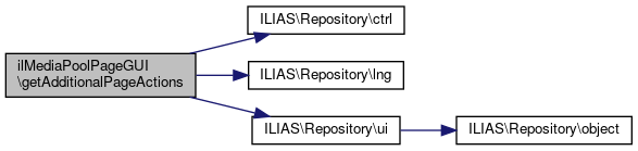 Here is the call graph for this function:| ilMediaPoolPageGUI::getAdditionalPageActions | ( | ) |