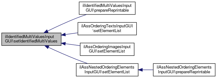 Here is the caller graph for this function:| ilIdentifiedMultiValuesInputGUI::setMultiValues | ( | array | $values | ) |