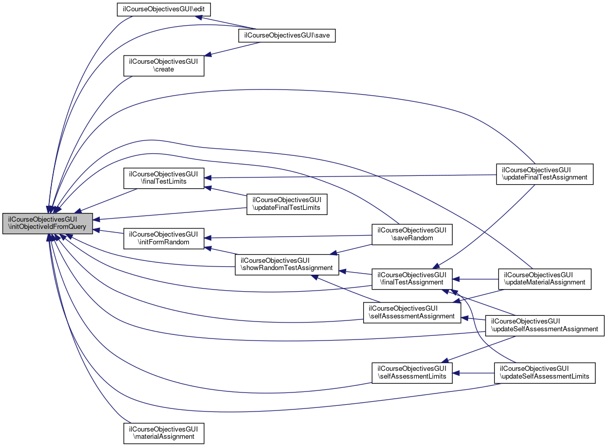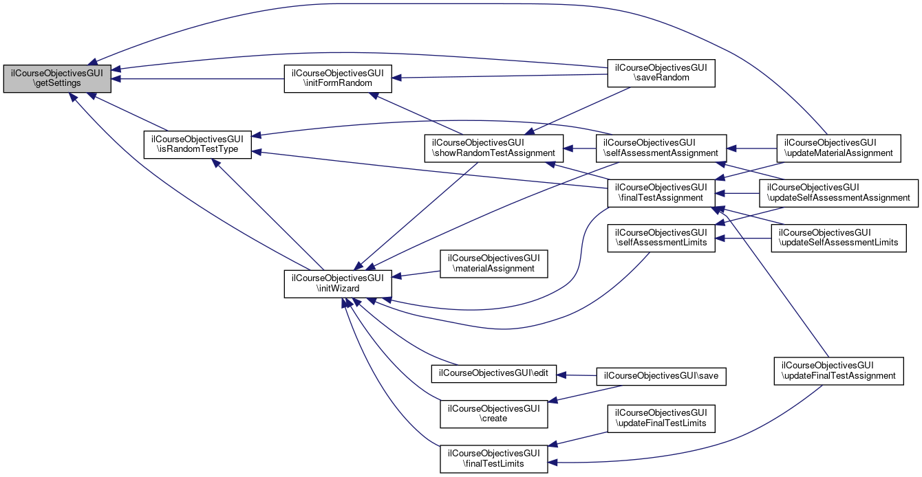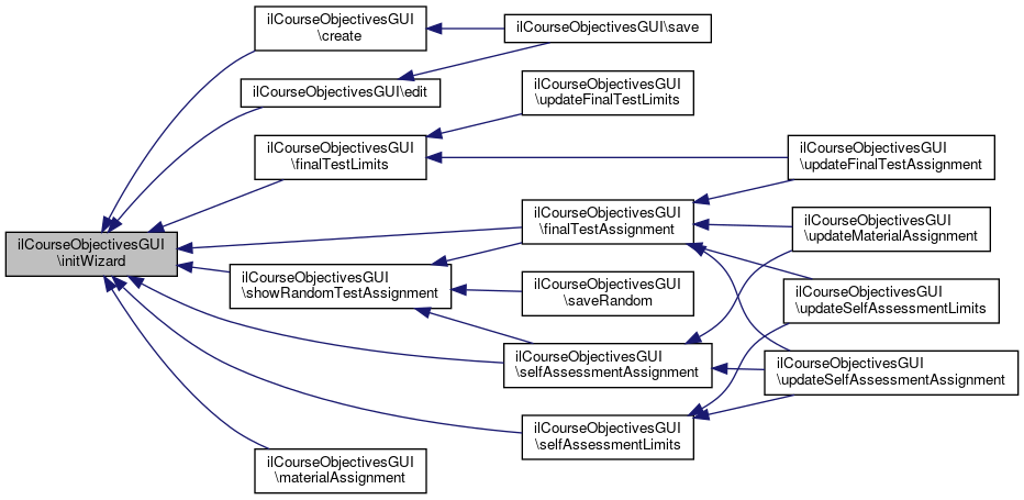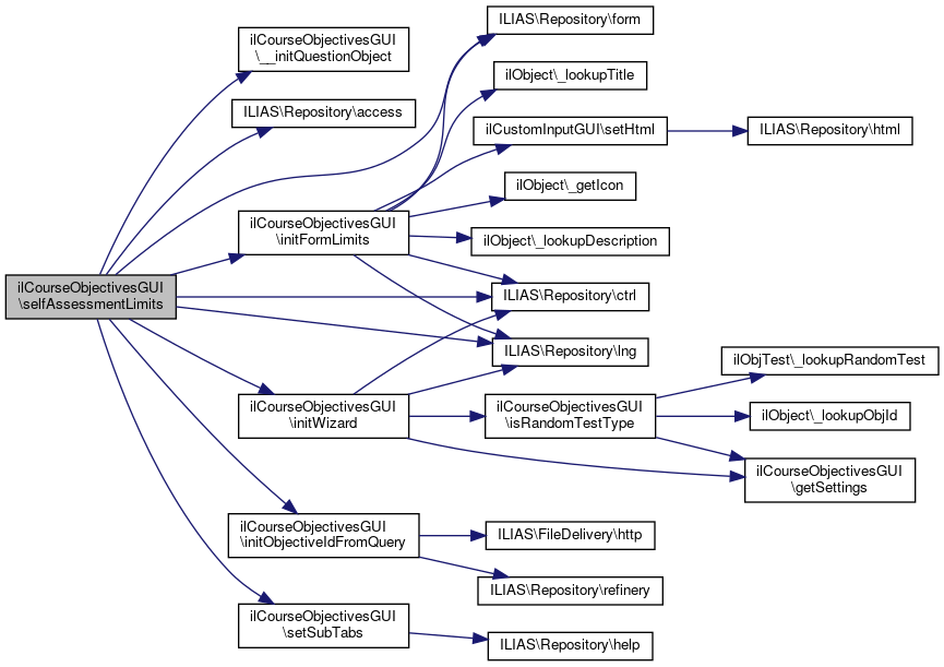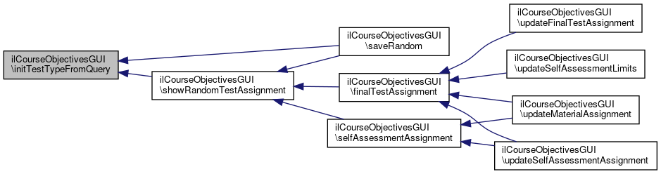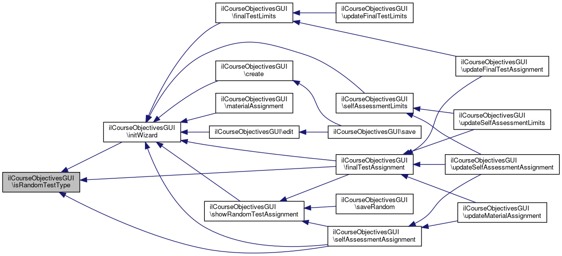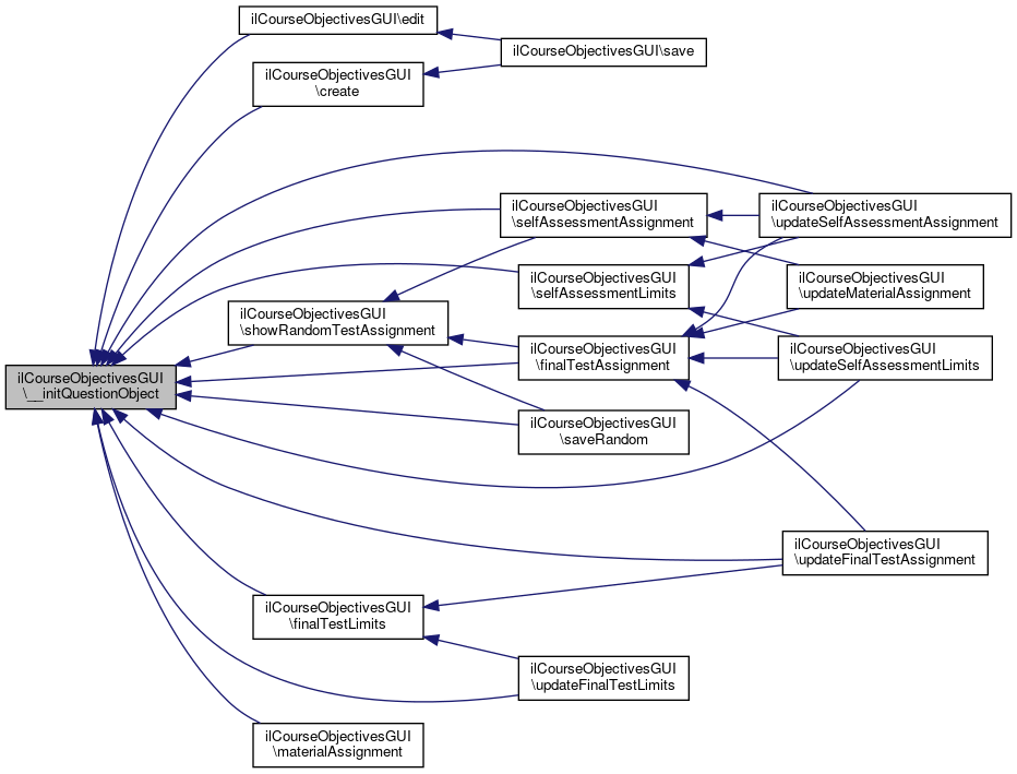 References __initQuestionObject(), ilCourseObjectiveQuestion\_getAssignableTests(), ILIAS\Repository\access(), ILIAS\Repository\ctrl(), initObjectiveIdFromQuery(), initWizard(), isRandomTestType(), ILIAS\Repository\lng(), setSubTabs(), showRandomTestAssignment(), ilCourseObjectiveQuestion\TYPE_SELF_ASSESSMENT, and ilLOSettings\TYPE_TEST_INITIAL.