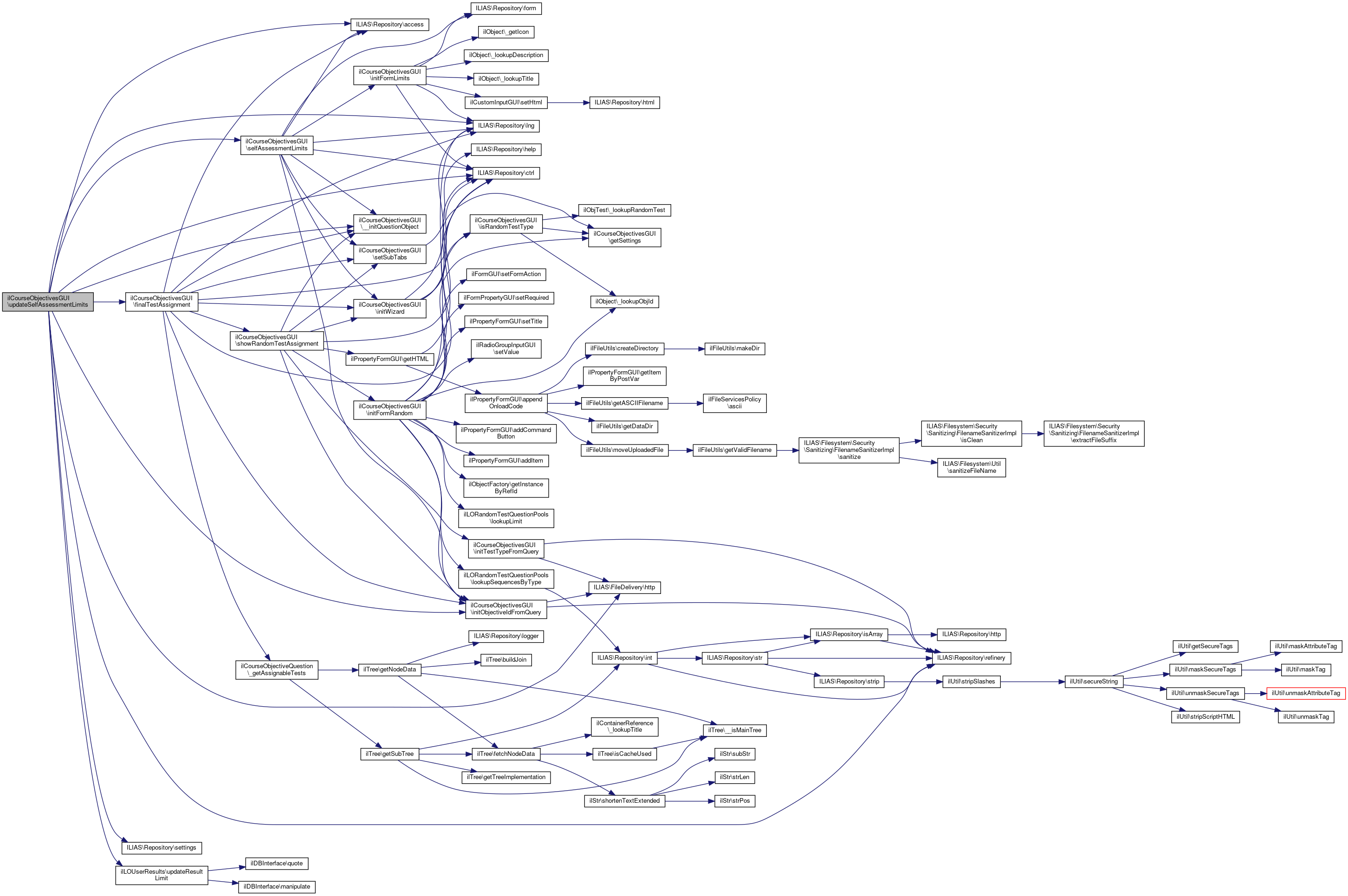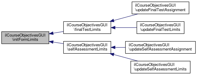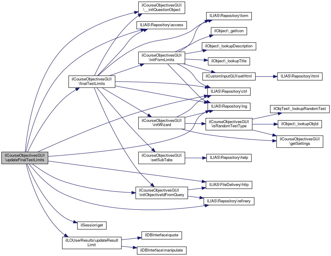 References __initQuestionObject(), ILIAS\Repository\access(), ILIAS\Repository\ctrl(), finalTestAssignment(), ILIAS\FileDelivery\http(), initObjectiveIdFromQuery(), ILIAS\Repository\lng(), ILIAS\Repository\refinery(), selfAssessmentLimits(), ILIAS\Repository\settings(), ilLOUserResults\TYPE_INITIAL, ilCourseObjectiveQuestion\TYPE_SELF_ASSESSMENT, and ilLOUserResults\updateResultLimit().