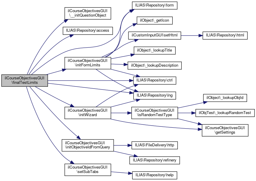 References __initQuestionObject(), ILIAS\Repository\access(), ILIAS\Repository\ctrl(), finalTestLimits(), ilSession\get(), ILIAS\FileDelivery\http(), initObjectiveIdFromQuery(), ILIAS\Repository\lng(), ILIAS\Repository\refinery(), ilCourseObjectiveQuestion\TYPE_FINAL_TEST, ilLOUserResults\TYPE_QUALIFIED, and ilLOUserResults\updateResultLimit().