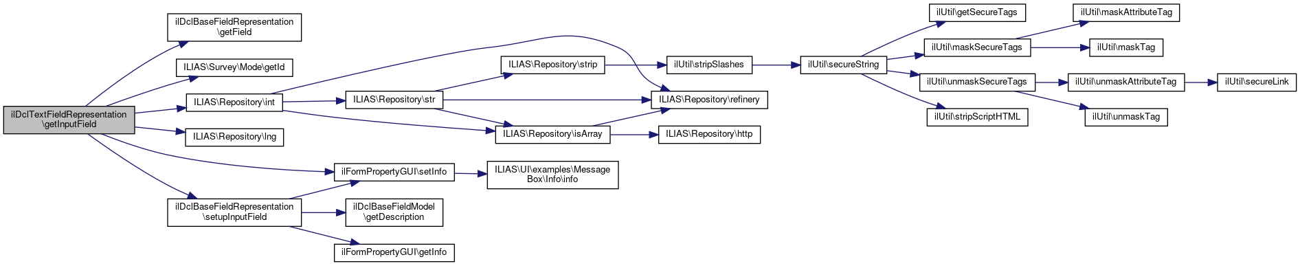 Here is the call graph for this function:| ilDclTextFieldRepresentation::getInputField | ( | ilPropertyFormGUI | $form, |