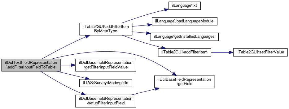 References ilTable2GUI\addFilterItemByMetaType(), ilTable2GUI\FILTER_TEXT, ilDclBaseFieldRepresentation\getField(), ilDclBaseFieldRepresentation\getFilterInputFieldValue(), ILIAS\Survey\Mode\getId(), and ilDclBaseFieldRepresentation\setupFilterInputField().